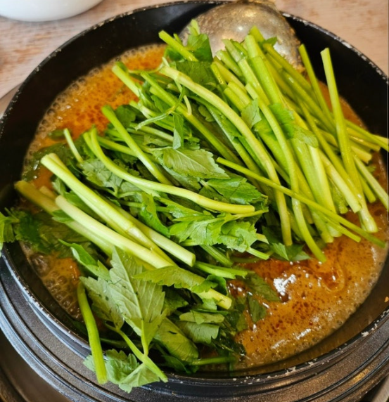 - 미나리와 깻잎을 마지막에 넣어 향을 더해줍니다.
