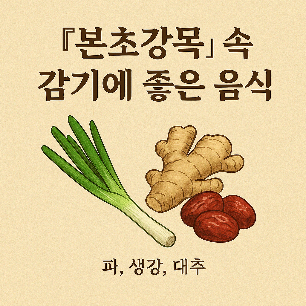 그 중 감기에 효과적인 식재료로는 **파(蔥), 생강(薑), 대추(棗)**가 자주 언급됩니다.