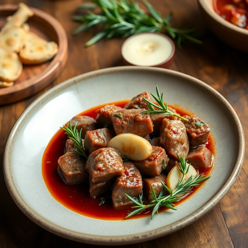 - 조리법: 포도주에 생강을 끓여 양고기를 저온 조리. 로즈마리 향 추가