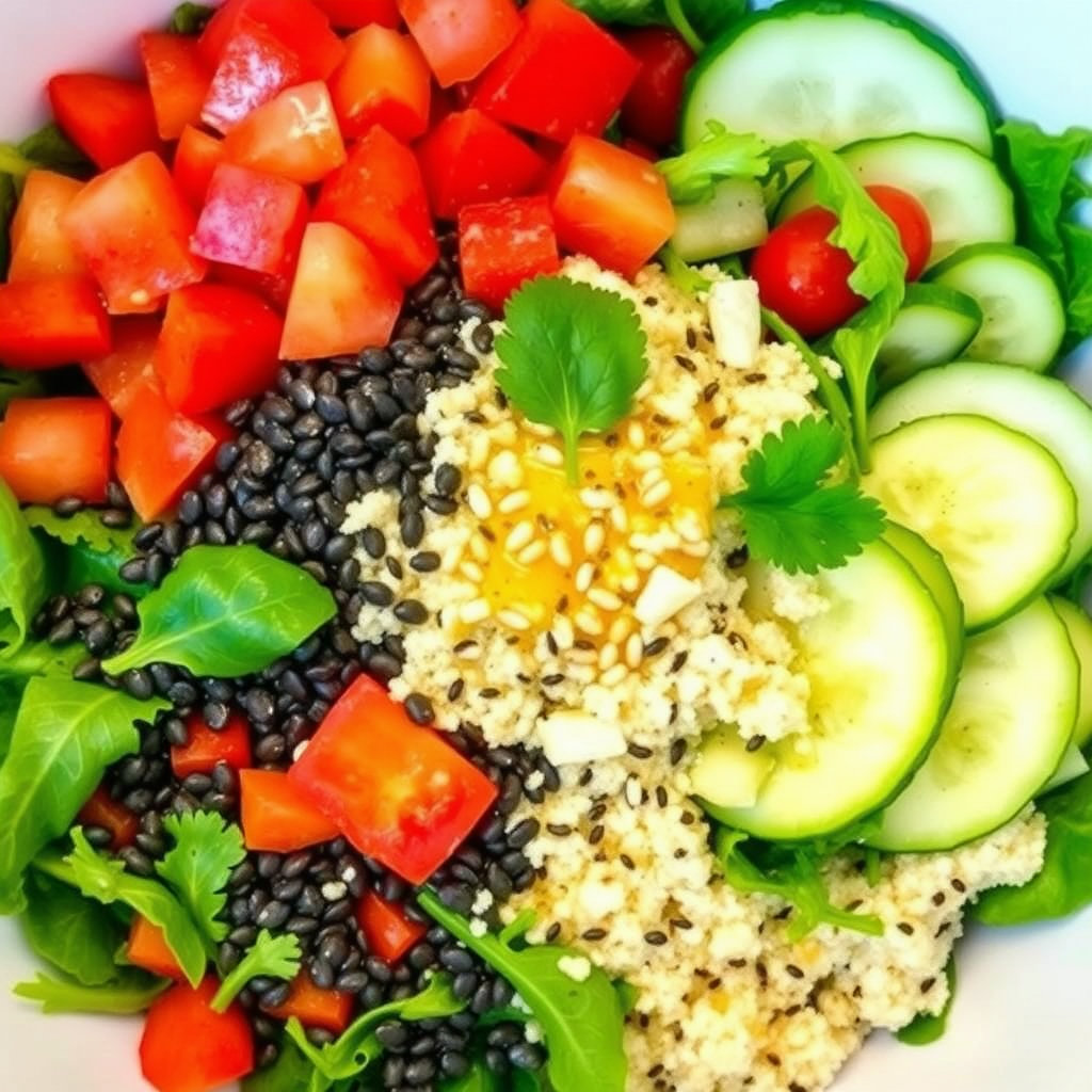 - 퀴노아를 삶아 식히고, 시금치·로메인·루꼴라 같은 채소와 섞어요.
